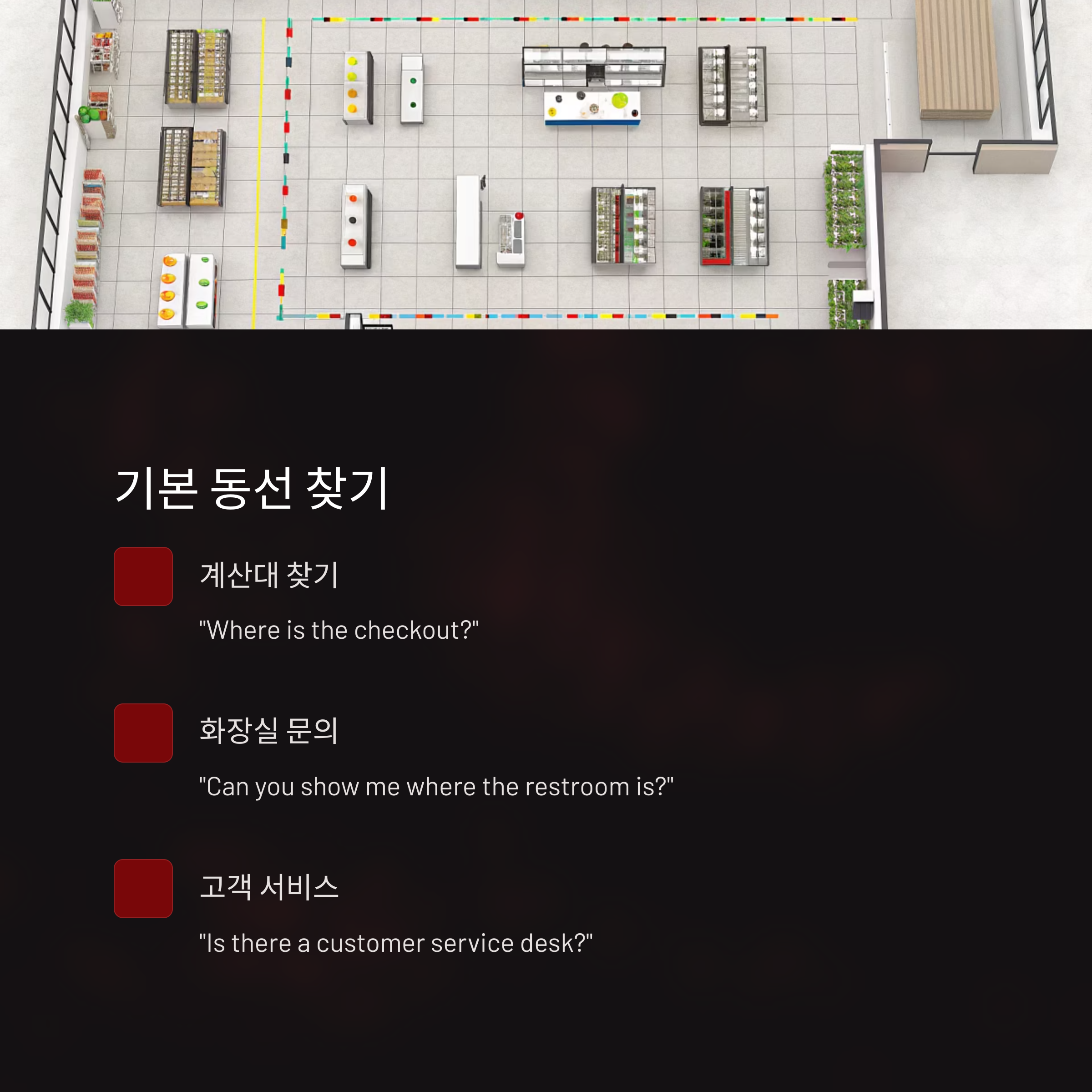 | 응답 위치 표현 | "In aisle 3", "next to the milk" 등으로 안내 |