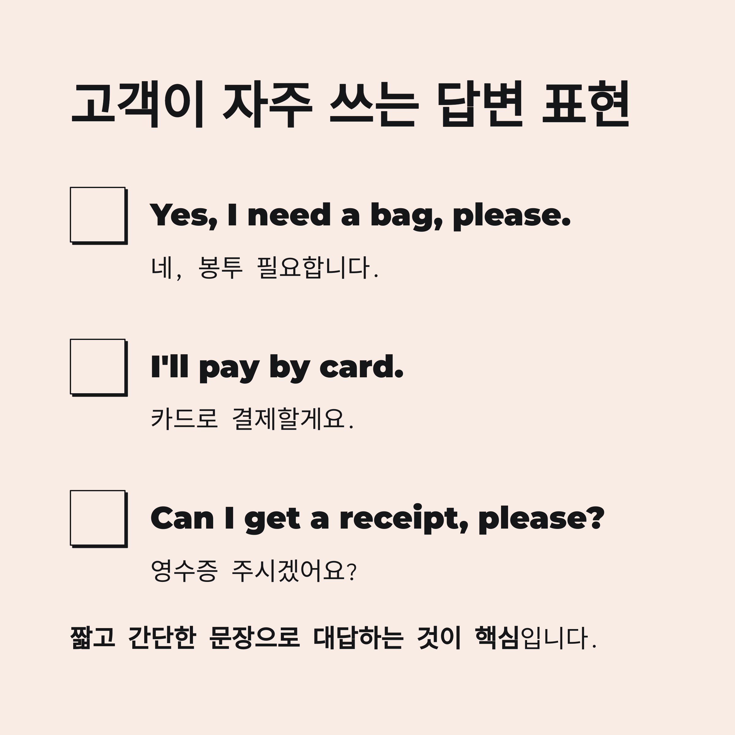 계산대 앞에서 영어로 어떤 말을 해야 할지 막막하다면,