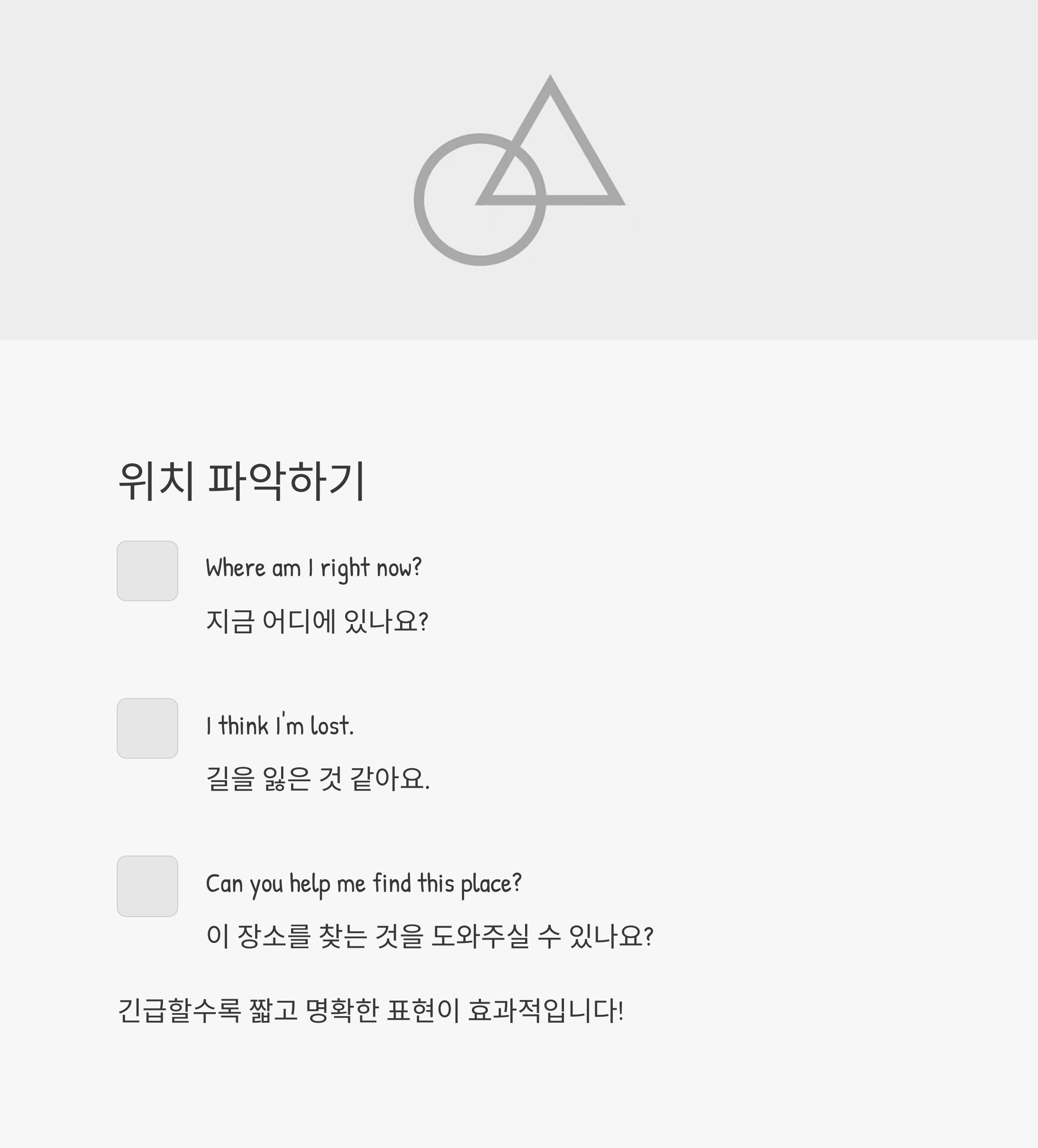 | 사람에게 도움 요청 | 가능한 한 밝은 표정과 손짓을 활용하세요 |