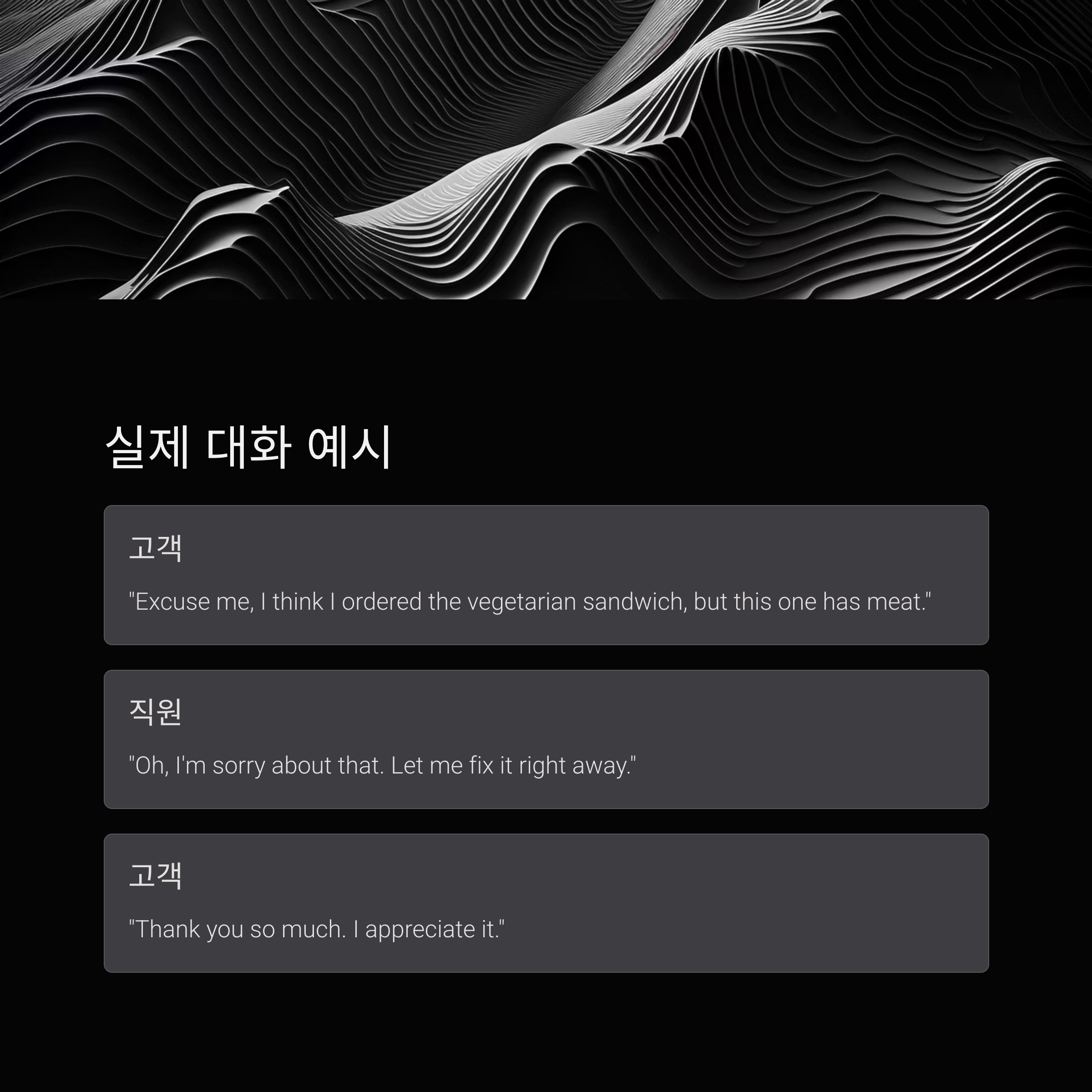 주문한 것과 다른 메뉴가 나왔을 때의 대화 예시