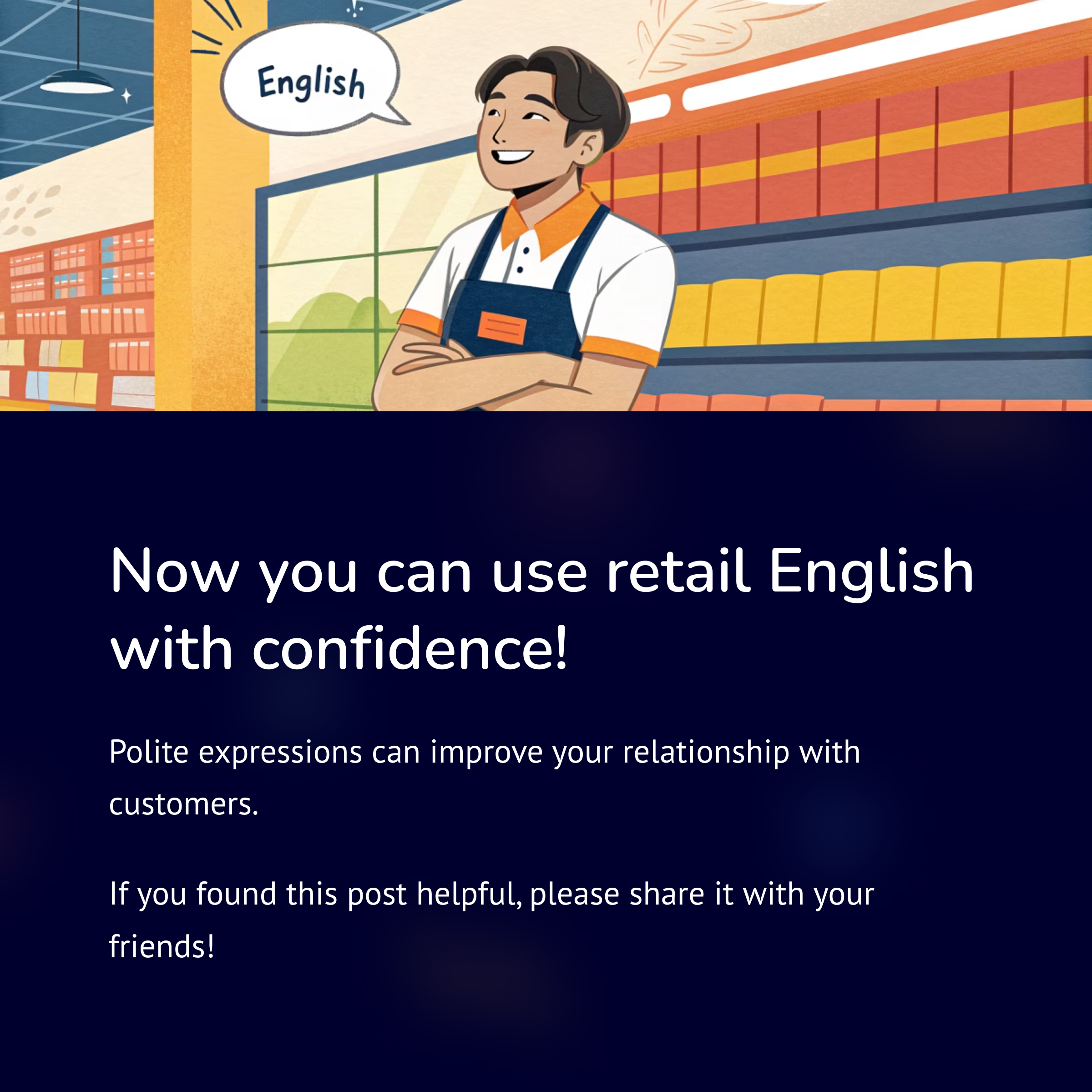 | 결제 유도 시 | Please proceed to the counter. | 자연스럽게 결제로 연결 |