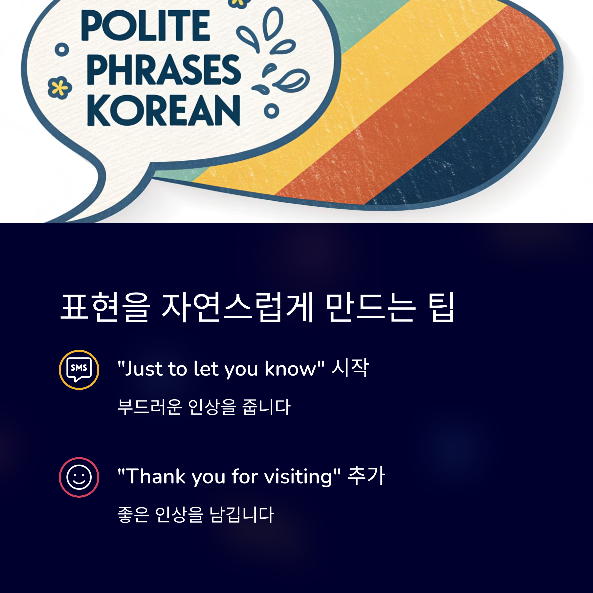감사 표현 "Thank you for visiting"을 앞뒤에 넣으면 인상이 좋아집니다.