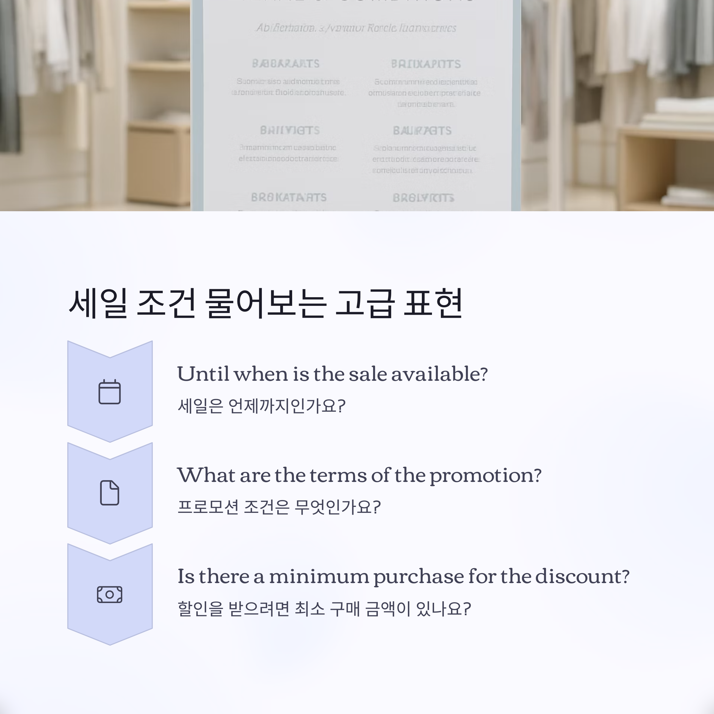 이러한 표현을 통해 세일 기간, 조건, 적용 여부를 명확히 확인할 수 있습니다.