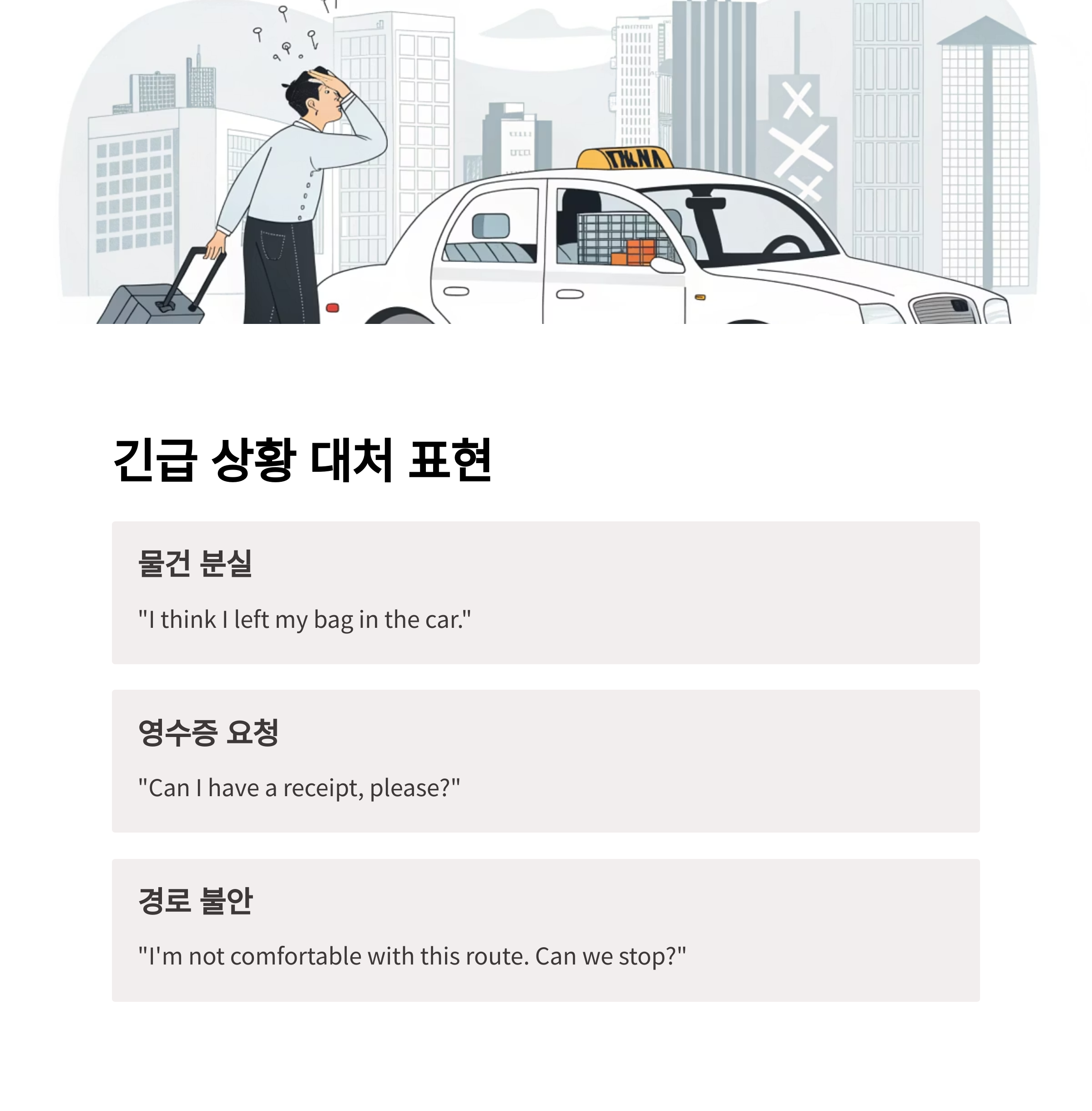 | 택시 상황별 대화 | 길 안내, 요금 협상 등 상황별 유용한 표현 모음 |